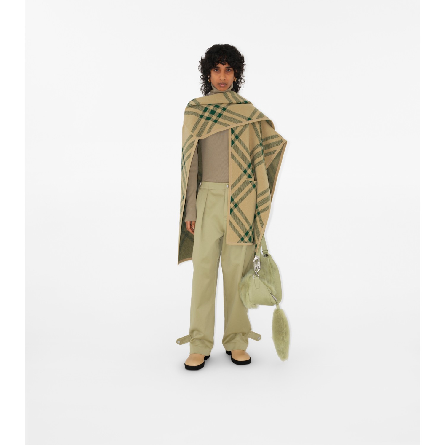 Check Wool Cape in Shrub Burberry Official Very well made.