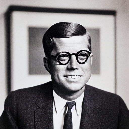 prompthunt A colorful studio portrait of JFK wearing glasses as a Very well made.