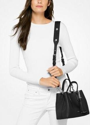 MICHAEL KORS Brooklyn Large Black Leather Silver Shoulder Grab Very well made.