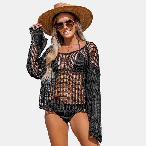 Women s Sheer Crochet Swim Cover Up Top Cupshe black s Target Very well made.